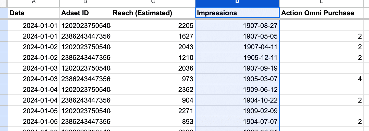 Quando estiver extraindo dados para o Google Sheets e notar que os valores aparecem formatados como datas, há uma solução simples.