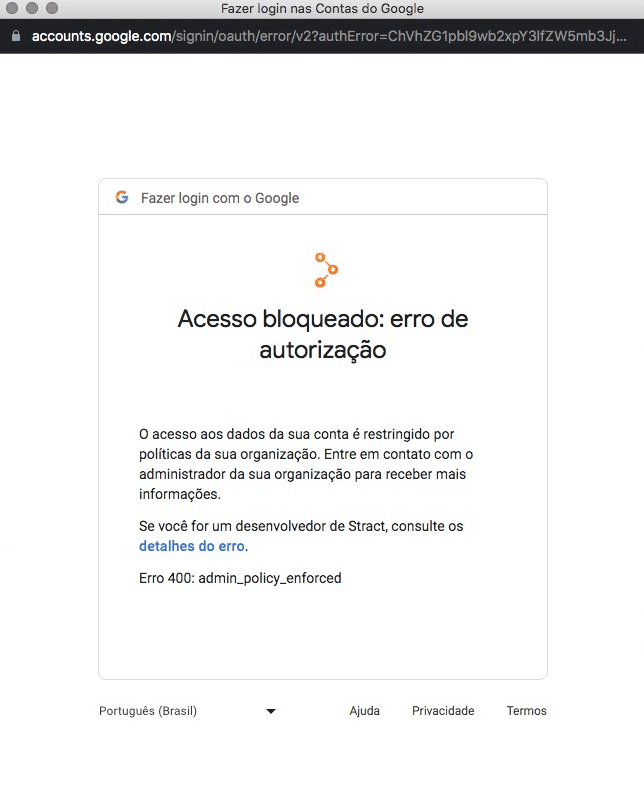 If the Stract extension is blocked you will see the message“Error 400: admin_policy_enforced“.
